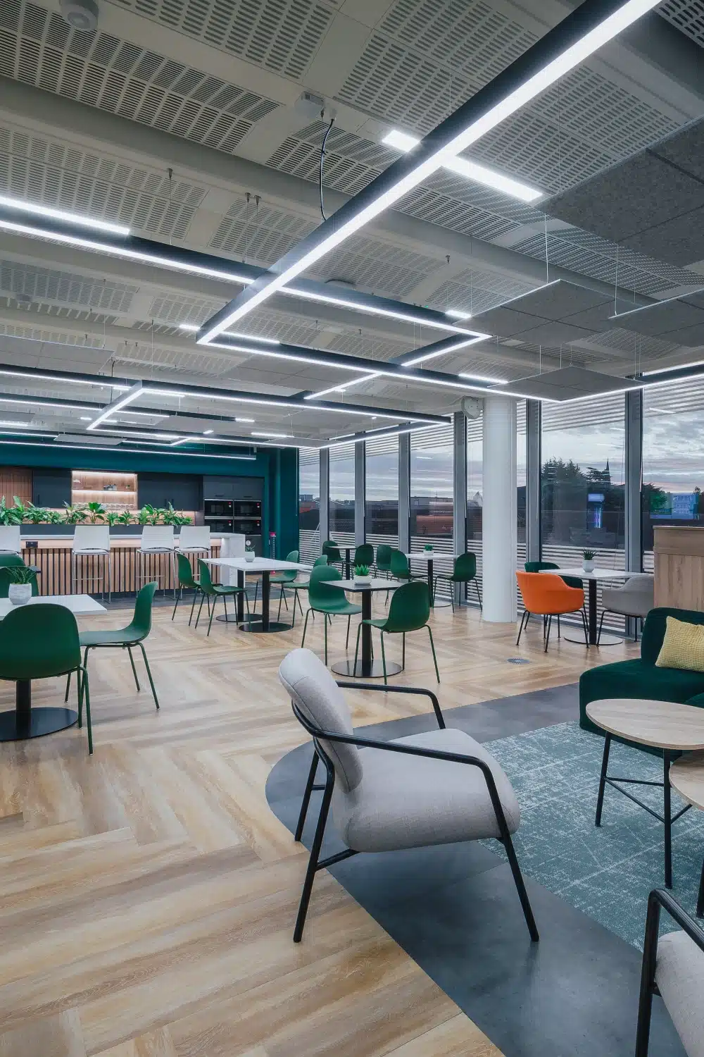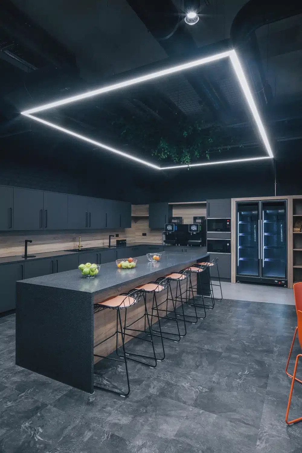 The progression of Linear Lighting technology is transforming the aesthetics of workspaces. Using remote access via bluetooth allows complete control over the colour, temperature and luminosity of the light.