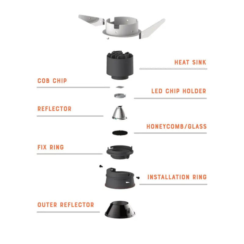 Powered by a constant current LED driver, Avaluna supports a wide range of dimming options, including Triac, 0–10V, and DALI systems. The driver includes overload, overvoltage, and short-circuit protection, ensuring safe and stable operation.